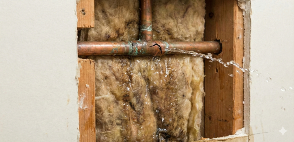 Sudden temperature changes or aging plumbing can cause pipes to crack or burst, leading to hidden leaks behind walls or under floors.