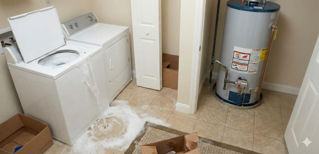 Malfunctions in washing machines, dishwashers, or water heaters can flood entire rooms within minutes, requiring fast extraction and drying.